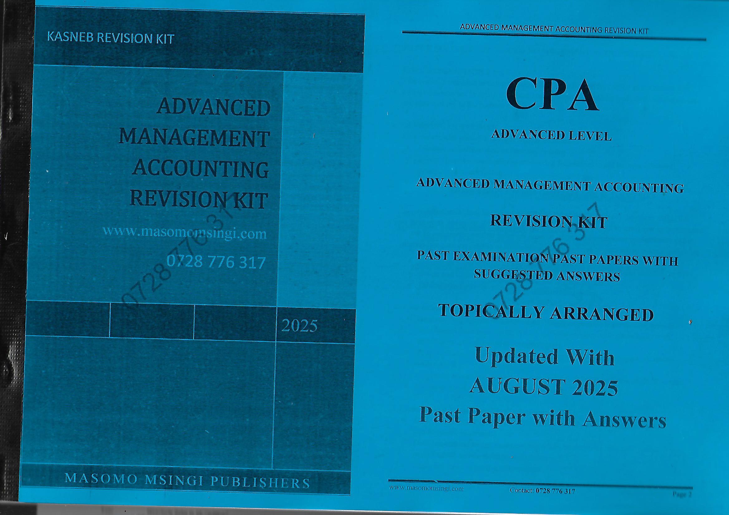 Advanced Management Accounting Revision Kit Hard Copy (Printed and bound) is available at Ksh 600
