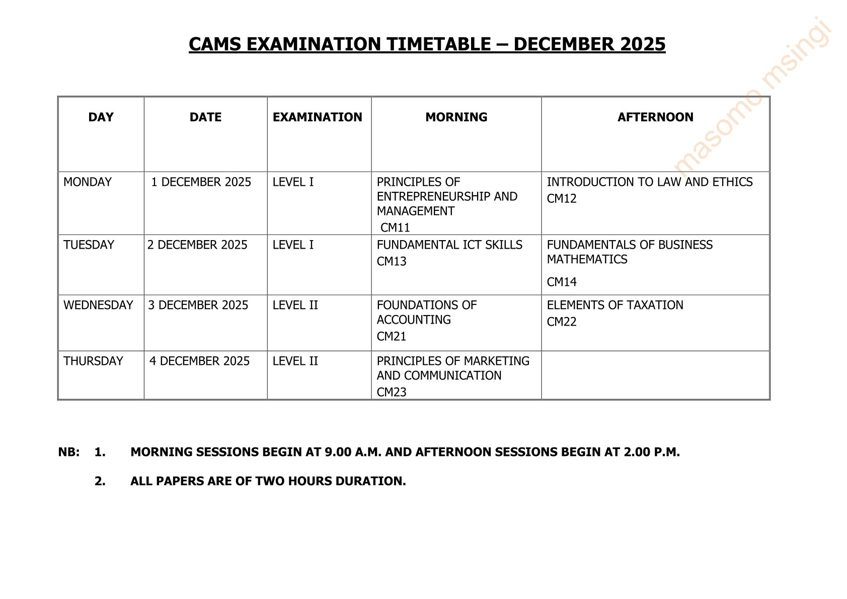 CAMS EXAMINATION TIMETABLE DECEMBER 2025 (Visited 93 times, 1 visits today)Share this:Share Written by MJ