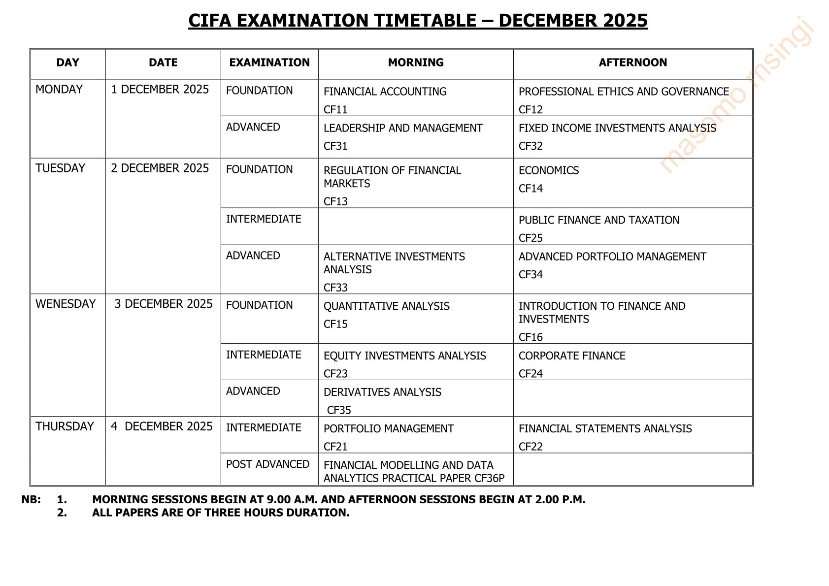 CIFA EXAMINATION TIMETABLE DECEMBER 2025 (Visited 360 times, 1 visits today)Share this:Share Written by MJ