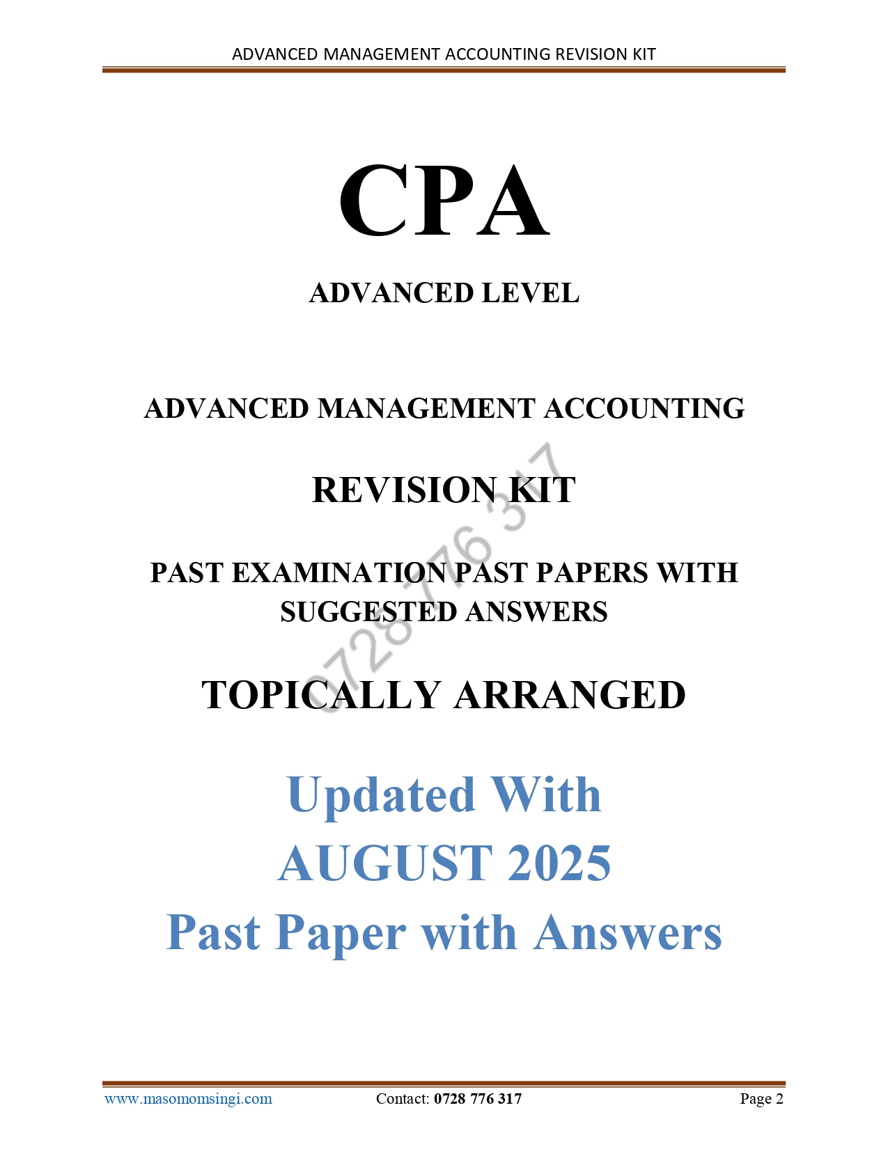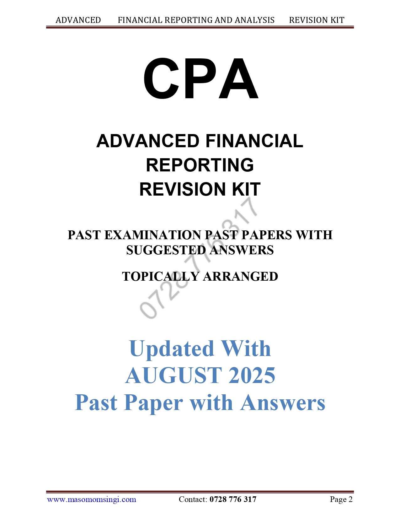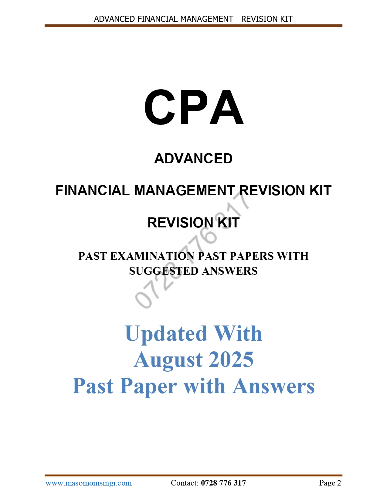 We’re pleased to present to you CPA revision kits which contains recent past papers and solutions (May 2015 – 2024).